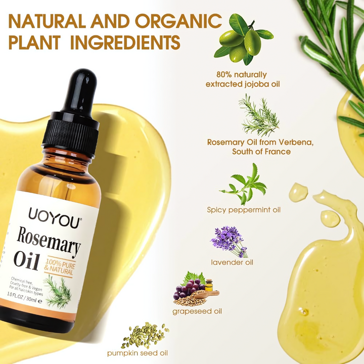 - Promotes healthy hair growth and reduces hair loss with UOYOU organic rosemary oil.